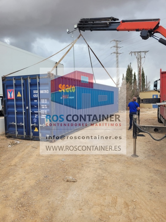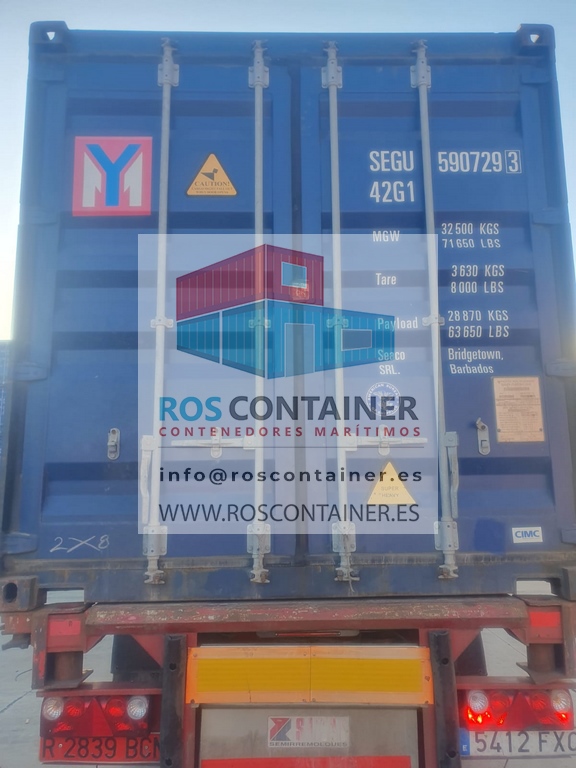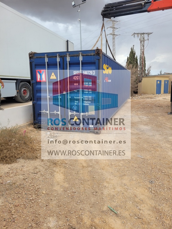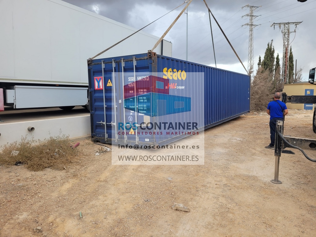 Contenedor 40′ High Cube (12 metros) usado suministrado en Sangonera la Seca. Murcia