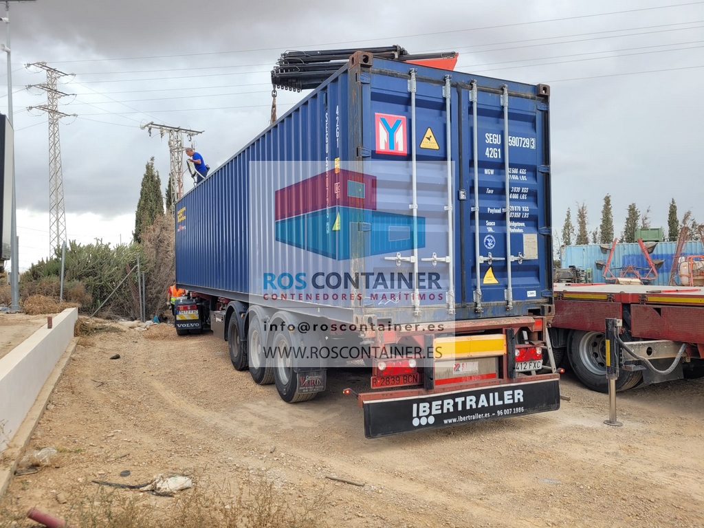 Contenedor 20′ (6 metros) openside nuevo suministrado en Xativa. Valencia